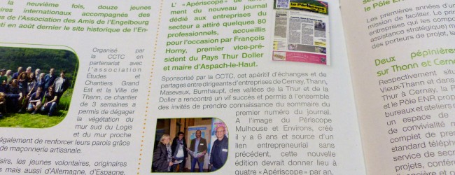 « L’Apériscope de lancement du journal dédié aux entreprises du secteur a attiré quelques 80 professionnels, accueillis pour l’occasion François Horny, premier vice-président du Pays Thur-Doller et maire d’Aspach-le-Haut » peut-on lire dans l’article. Une initiative appréciée par les entreprises et les collectivités locales des deux vallées du Sud Alsace.