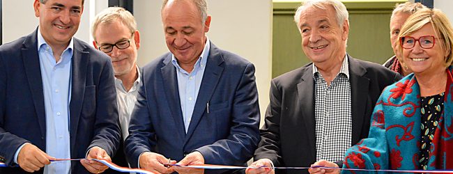 Légende de photo de tête : « Couper de ruban avec de g. à d. Jean Rottner, Frédéric Versolato, Marc Haeberlin, Philippe Maîtreau et Nathalie Motte »
