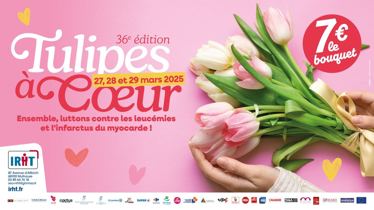 Fin mars, plus de 1000 bénévoles seront déployés sur trois jours dans près de 200 points de vente à travers le Haut-Rhin et le Territoire de Belfort pour vendre des bouquets de tulipes. Cette opération Tulipes à Cœur permet de récolter des fonds destinés aux recherches menées par l’Institut de Recherche en Hématologie et Transplantation (IRHT) de Mulhouse.