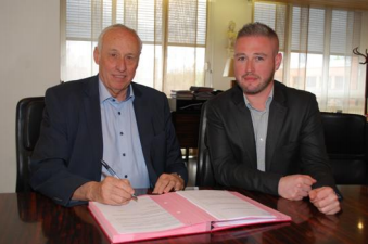 Crédit photo: L’Alsace (Signature du bail du Café Littéraire entre le Maire Jean-Marie Zoellé, à gauche, et Mikaël Maetz, à droite)