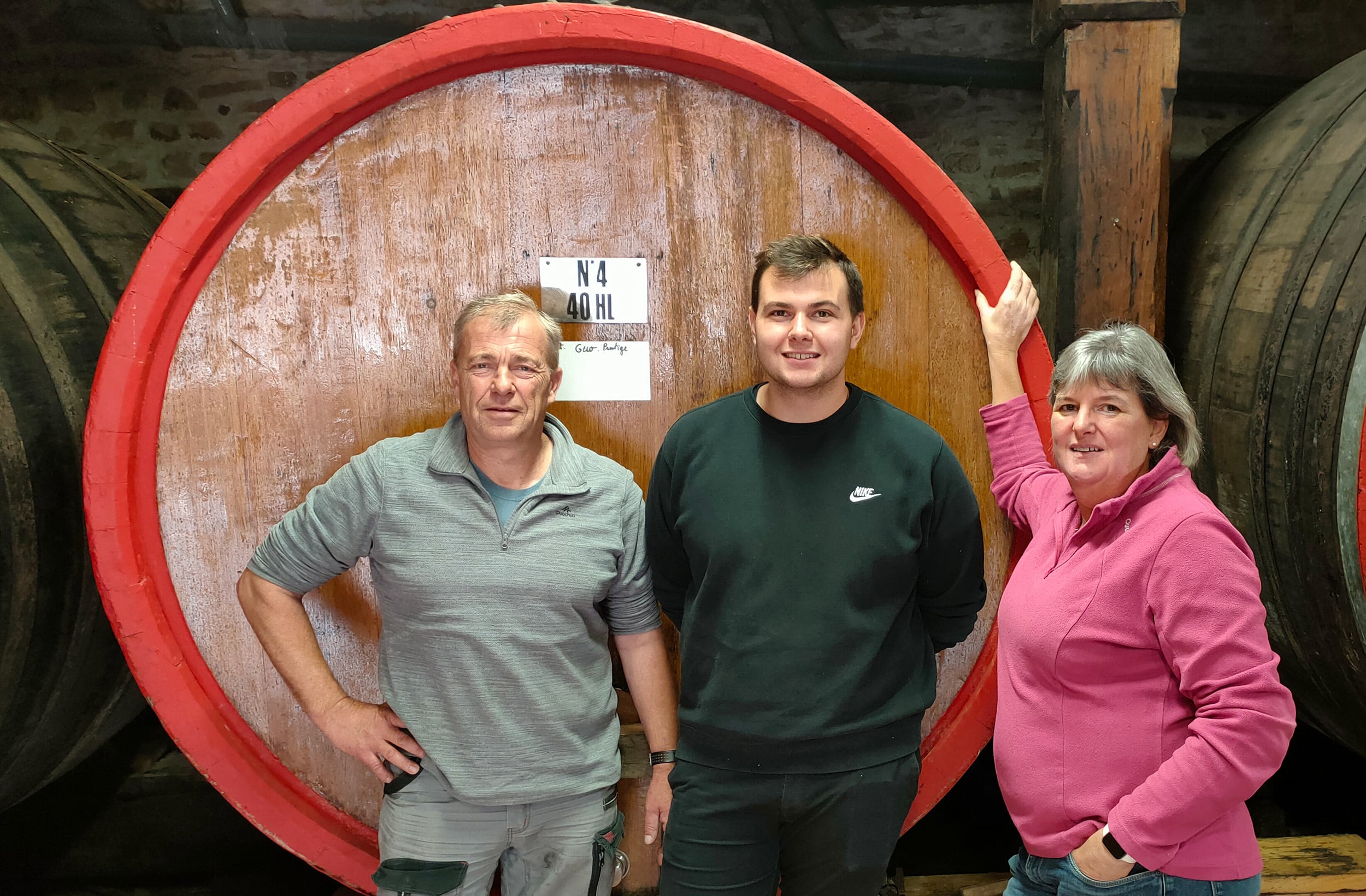 Devenir bio aura été un challenge, témoigne Eric. « Voir notre fils, Lucas rejoindre l’entreprise en pleine période de conversion aux cultures biologiques, ça a été un soulagement » dit-il. Le garçon de 22 ans sort d’un BTS Viticulture et Œnologie. Pendant son alternance, il a travaillé sur le bio et a découvert la biodynamie. Lucas s’est donc construit un bagage qui lui permet d’être utile à l’avenir du domaine et ainsi perpétuer une longue histoire. La famille compte des viticulteurs dès 1610. Le premier domaine a été installé à Soultzmatt en 1937, à l’endroit même où il se situe aujourd’hui encore. Après la deuxième guerre mondiale, l’Alsace a voulu s’émanciper, « ne plus être vu comme un petit vin de table comme sous l’occupation allemande » explique Eric. L’exploitation a pris un premier essor en 1953 quand elle a pu commencer à vendre son vin en bouteille. Puis il y en a eu un second en 1978 lorsque le domaine est devenu Klein Brand et qu’il a doublé sa surface.