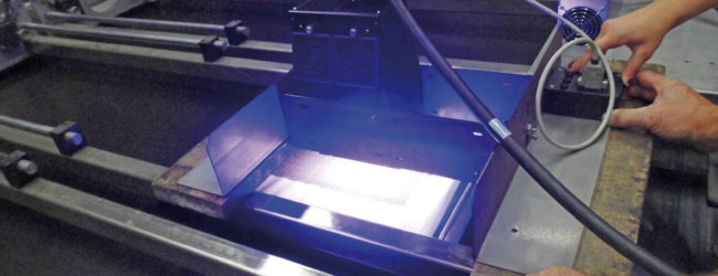 En effet, ces résines sont généralement composées à 100 % d’extraits secs, et il n’y a pas de rejet de solvant, ni à l’application, ni au séchage. De plus, la réticulation nécessite des lampes, et non un four, d’où un gain de place et d’énergie particulièrement important. Ce projet en cours de développement sera breveté une fois le processus validé.