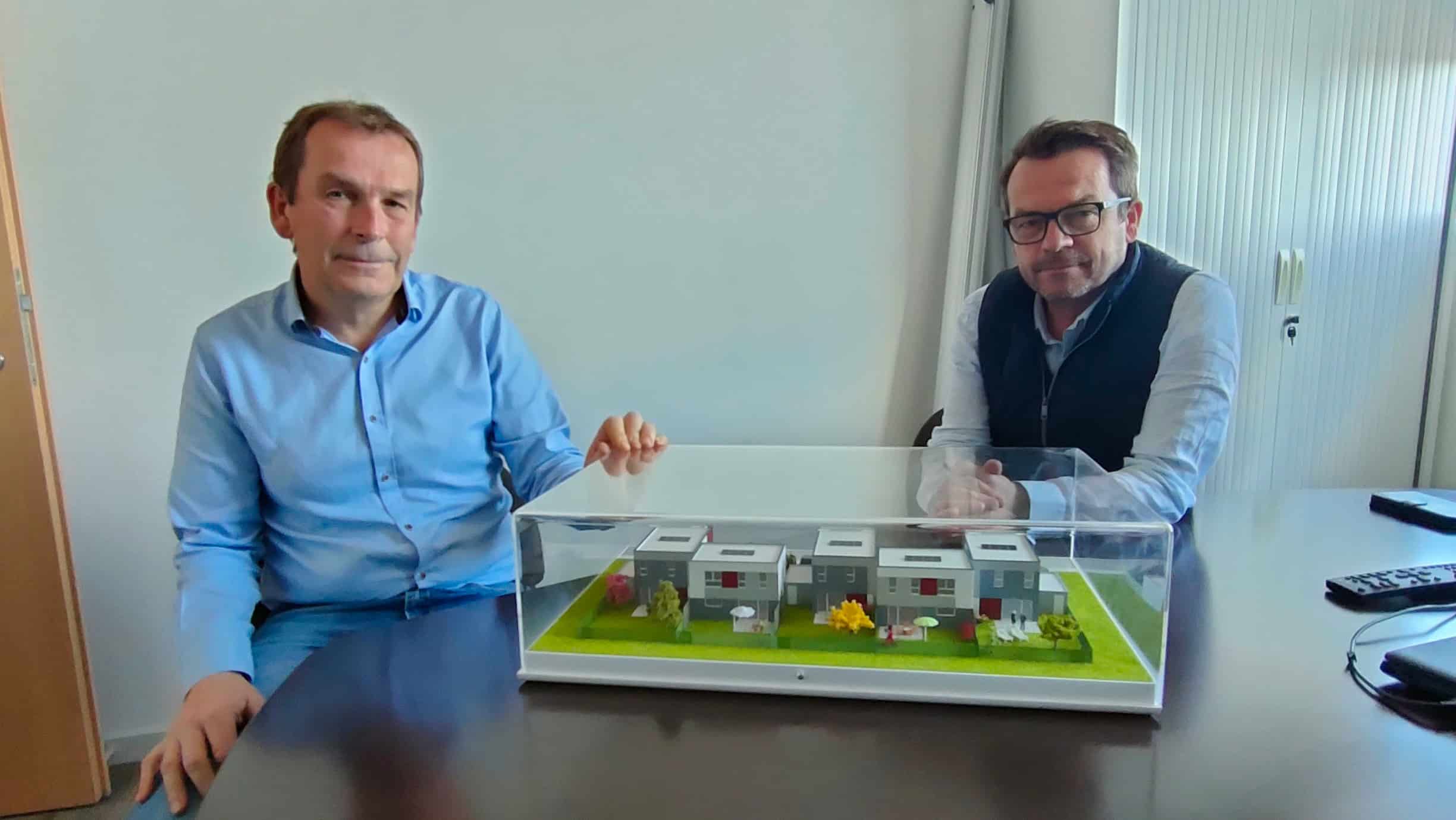 Stephan Georgenthum veut élaborer des projets respectueux de l’environnement, durables, qui s’inscrivent sur du long terme. « Il s’agit de respecter au maximum l’environnement lors de nos interventions, d’intégrer les zones d’habitation dans leur contexte, urbain ou rural et, de penser au cadre de vie des futurs habitants » dit-il. À côté de cela, il y a une réglementation et une législation qui évoluent. « On va devoir s’adapter » prévient le dirigeant avant de développer : « La récente loi écologie et résilience prévoit notamment le ZAN, Zéro artificialisation nette » ce qui va rendre plus difficile la création de nou-veaux lotissements. « Nous, on aménage de façon cohérente en créant avec plus de densité » dit le gérant. En résumé, les terrains constructibles deviennent plus petits pour construire plus de logements à l’hectare. On a trois styles de produits : la maison individuelle, les logements collectifs et Le Hamo : « un concept de 3 maisons en bande, qui permet un gain de place foncier » présente Stephan Georgenthum avant de préciser que ces constructions permettent aux acheteurs « de profiter pleinement des avantages multiples d’une maison, ouverte sur l’extérieur, bénéficient d’un jardin privatif, d’une terrasse, d’un garage fermé et d’une place de parking avec un budget maîtrisé.»