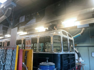 « Avec des moteurs électriques, la maintenance sur la chaîne de traction est beaucoup plus légère qu’avec des moteurs thermiques mais, en revanche, les boogies (le chariot situé sous un véhicule ferroviaire et sur lequel sont fixés les essieux et les roues) demandent un soin particulier, d’autant qu’une partie des boogies reçoivent les moteurs électriques », explique Claudio Puzzuoli, responsable maintenance tramway, Tram-Train et bus. Durant cette révision, on refait aussi la climatisation des cabines de conduite et on révise les pantographes [NDLR : le bras articulé qui transmet l’électricité de la caténaire au tram]. Comme il est difficile d’immobiliser longtemps une rame, les techniciens Soléa et ceux d’entreprises sous-traitantes (Arterail actuellement pour les clims des cabines), procèdent à la dépose des pièces à réviser, remonte un organe provisoire en stock et révise tranquillement le boogie, le pantographe ou le boîtier de climatisation pendant que la rame reprend du service. « C’est aussi une période importante pour améliorer et fiabiliser les rames, en partenariat avec le constructeur », poursuit le responsable maintenance.