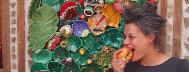 En effet l’artiste plasticienne de Spechbach-le-Haut collectionne les objets récupérés, notamment la vaisselle en faïence, pour en faire des tableaux décoratifs inspirés. Actuellement, elle est en pleine période de « récolte » de légumes ou de fruits en faience chinés avec passion. Ses productions sont à découvrir dans la superbe maison ronde qu’elle partage avec l’artiste Yves Carrey.